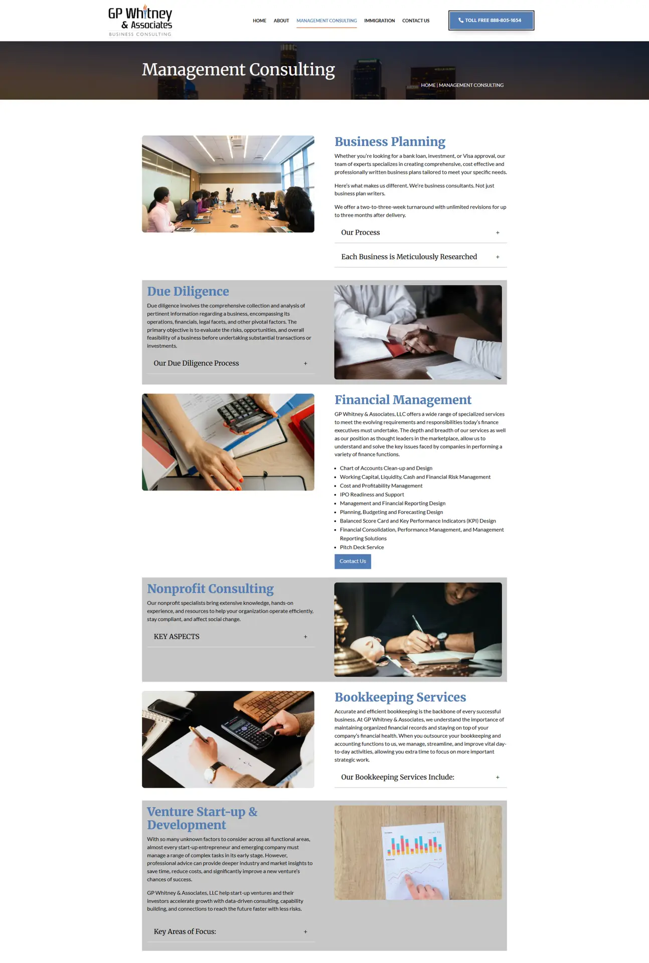 A five-page website was developed with free consultation promotion, structured service presentation, social media integration, toll-free contact access, and 123Forms integration to streamline inquiries and improve client communication.