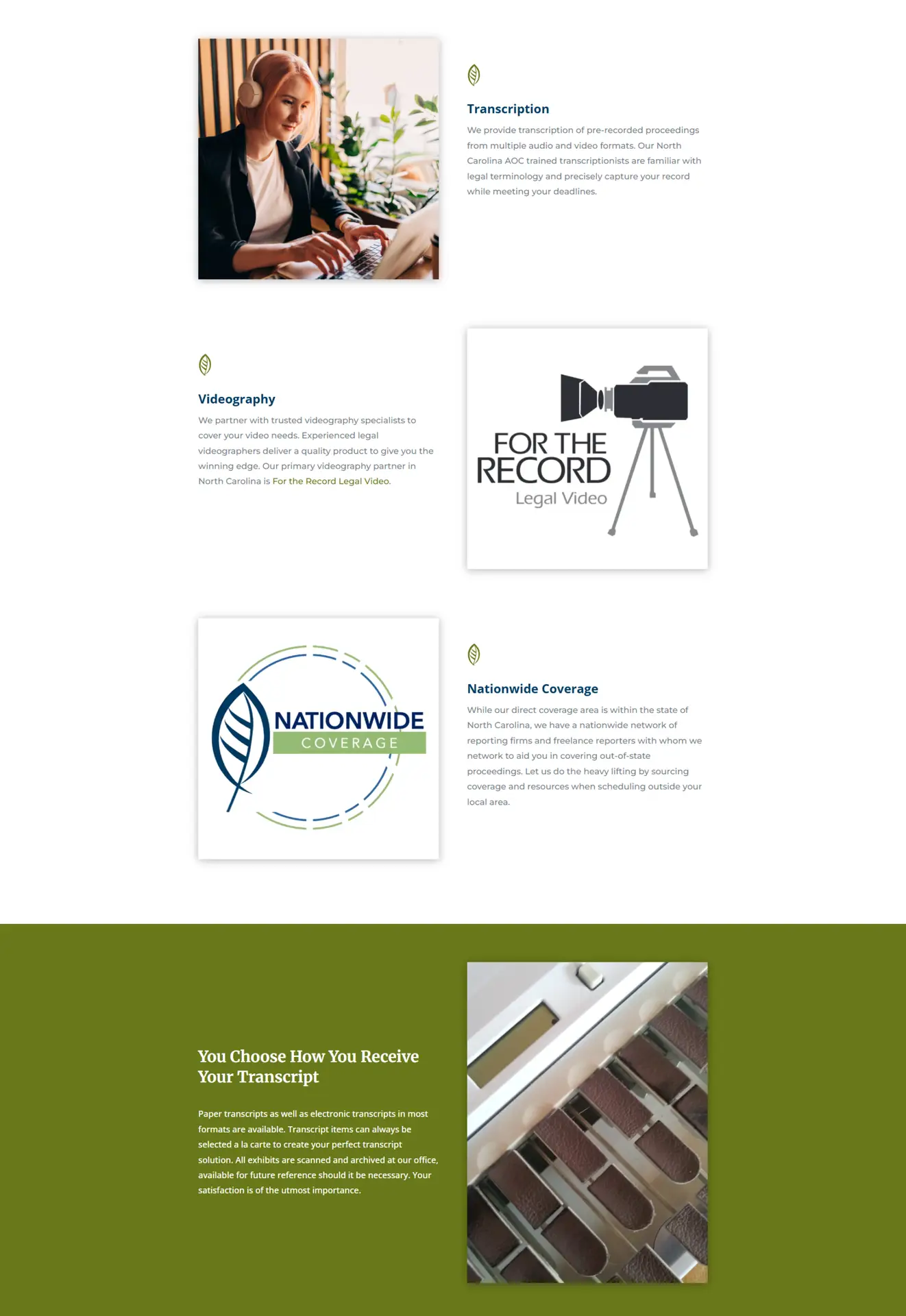 A legal court reporting company specializing in depositions, hearings, examinations under oath, and transcription services for attorneys and law firms. The industry requires precision, reliability, and compliance, demanding a clear digital presence that communicates trust, accuracy, and nationwide coverage.